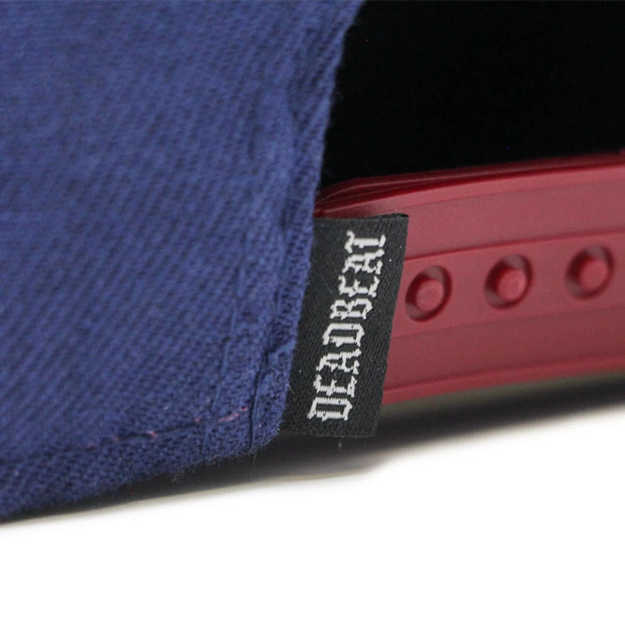 Front sewn on patch, matching under brim, Deadbeat taping and hang tab. We designed every feature of this snapback hat to match.